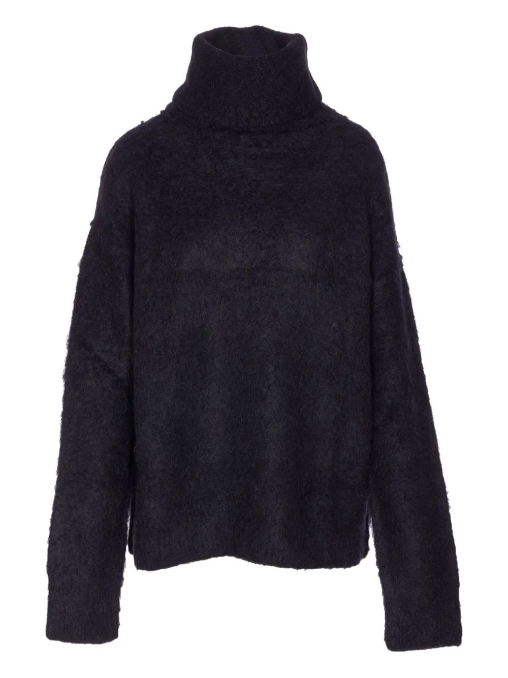 high-neck long-sleeve sweater Highlights - Black - High neck - Long sleeves - Alpaca wool blend - Brushed texture Made in Italy Composition Alpaca 51%, Virgin Wool 28%, Polyamide 18%, Elastane 3% Washing instructions Read Manufacturer Guidelines