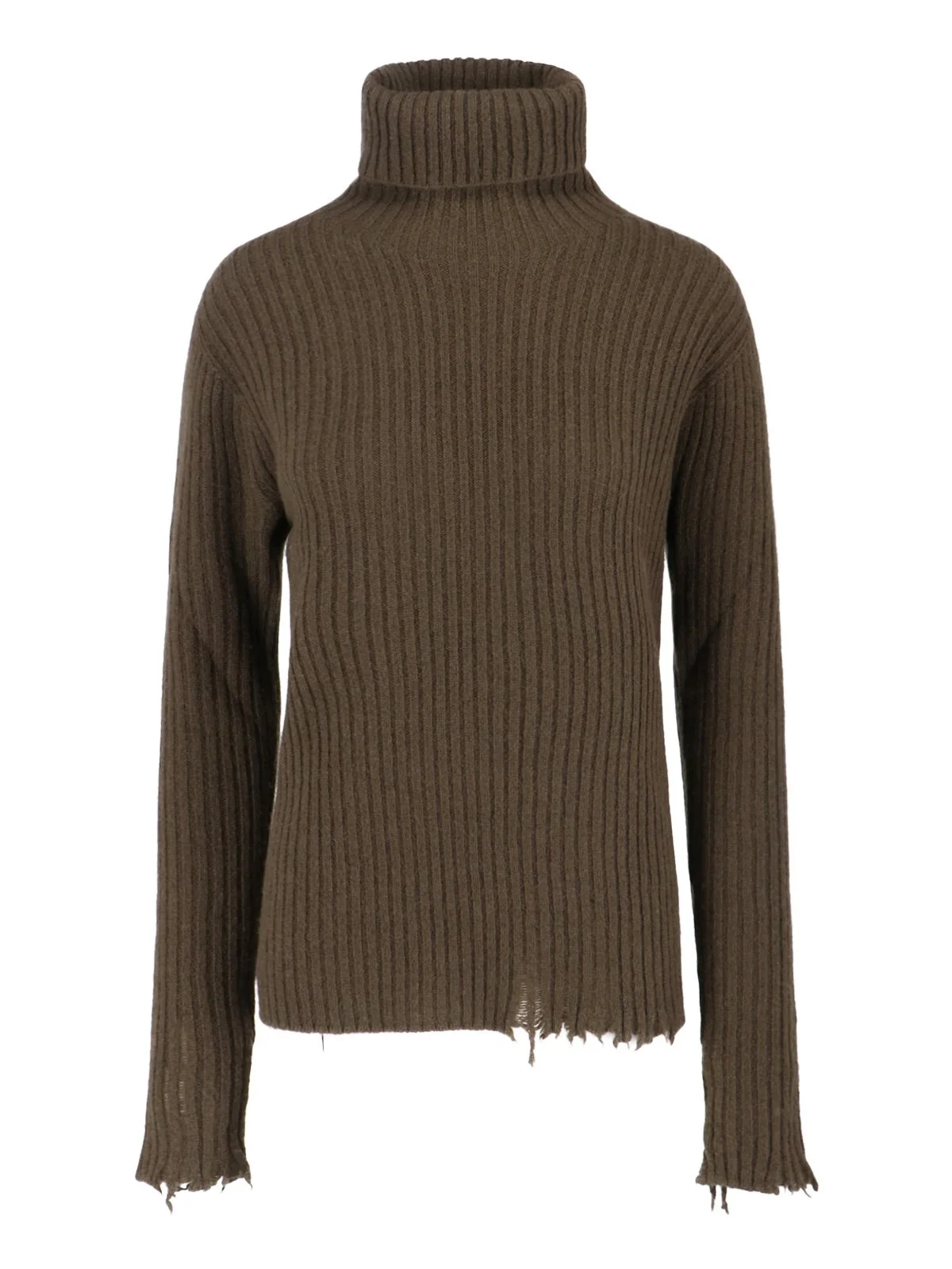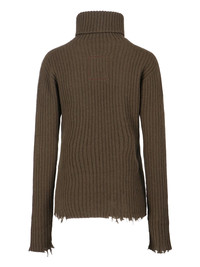 UMA WANG HIGH NECK SWEATER IN GREEN CASHMERE WITH RIBBED PATTERN, LOGO EMBROIDERY AT THE BACK, DESTROYED TRIM, STRAIGHT HEM. PRODUCT INFO PRODUCT CODE UK7151UW480 COMPOSITION: 100% CASHMERE SIZE AND FIT: REGULAR FIT MADE IN: ITALY