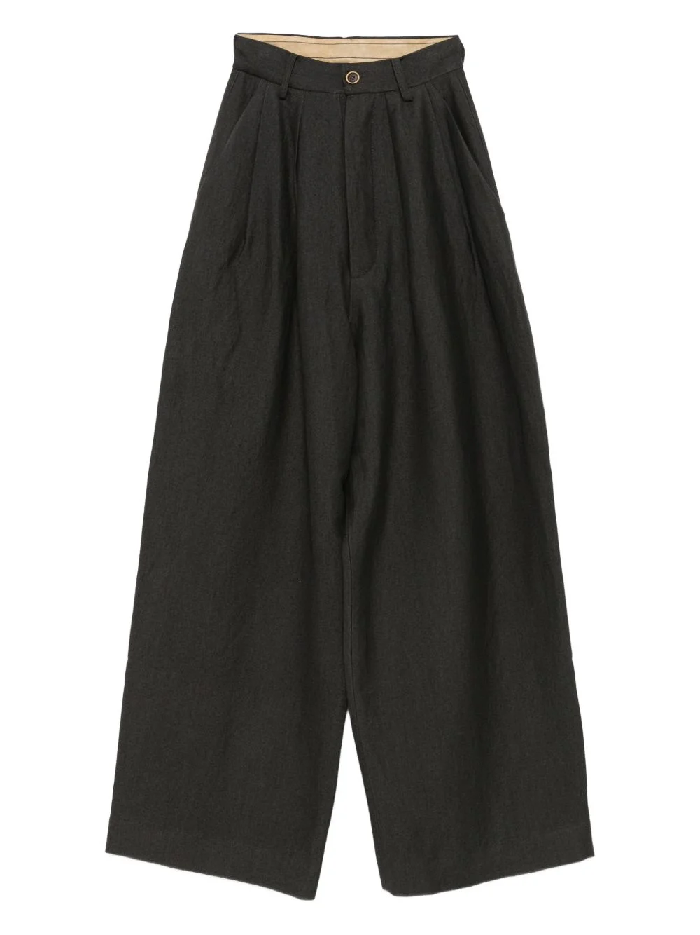 high-waisted palazzo trousers Highlights - Dark grey - Linen/flax - Front button and zip fastening - Belt loops - Side slit pockets - Rear welt pockets Imported Composition Linen/Flax 100% SIZE & FIT Model measurements Height 5 ft 11 in(1.8 m) Bust/Chest 31.49 in(80 cm) Hips 36.61 in(93 cm) Waist 24.4 in(62 cm) Washing instructions Read Manufacturer Guidelines