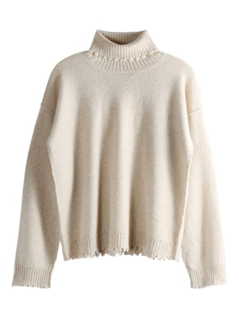 turtleneck frayed-hem sweater Highlights - Blue - Turtleneck neckline - Frayed hem - Long sleeves - Cashmere wool Imported Composition Cashmere 100% Washing instructions Read Manufacturer Guidelines