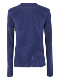 ribbed frayed sweater Highlights - Blue - Ribbed knit - Frayed hem - Long sleeves - Crew neck Imported Composition Cashmere 100% Washing instructions Read Manufacturer Guidelines