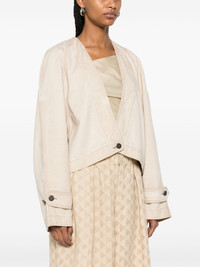 JJ jacket Highlights - Sand beige - Front button fastening - Buttoned cuffs - V-neck - Straight hem Made in Italy Composition Cotton 100% SIZE & FIT Model measurements Height 5 ft 11 in(1.8 m) Bust/Chest 31.49 in(80 cm) Hips 35.82 in(91 cm) Waist 24.8 in(63 cm) FittingInformation Designed to be unstructured, offering a loose fit throughout Made from a midweight non-stretch fabric