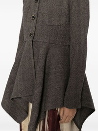 Koney jacket Highlights - Black/brown - Virgin wool - Herringbone pattern - Collarless - Front button fastening - Long sleeves - Chest patch pocket - Handkerchief hem Made in Italy Composition Lining: Cupro 50%, Viscose 50% Outer: Virgin Wool 100% SIZE & FIT Model measurements Height 5 ft 10 in(1.77 m) Bust/Chest 31.49 in(80 cm) Hips 35.43 in(90 cm) Waist 25.19 in(64 cm) FittingInformation Designed for a close fit at the chest and waist with a loose fit at the hip Made from a midweight non-stretch fabric This piece fits true to size – take your usual size