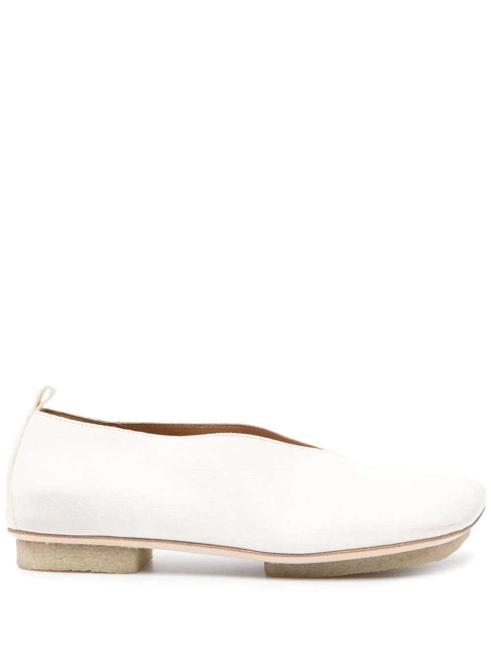 leather ballerina shoes These white Uma Wang ballerina flats feel like a contemporary nod to traditional Manchu styles with their slight platform toe. They’re crafted from supple leather with angular toes and slit vamps that enhance the clean-lined silhouette. Highlights - Off-white - Calf leather - Tonal stitching - V-shape vamp - Asymmetric toe - Slip-on style - Pull-tab at the heel - Branded leather insole - Rubber sole Made in Italy Composition Outer: Calf Leather 100% Lining: Calf Leather 100% Sole: Rubber 100%, Calf Leather 100% SIZE & FIT Measurement HEEL 0.98 in(2.5 cm) Sole height 0.59 in(1.5 cm)