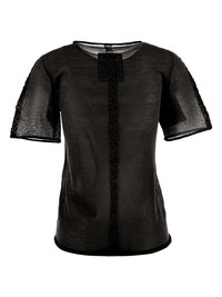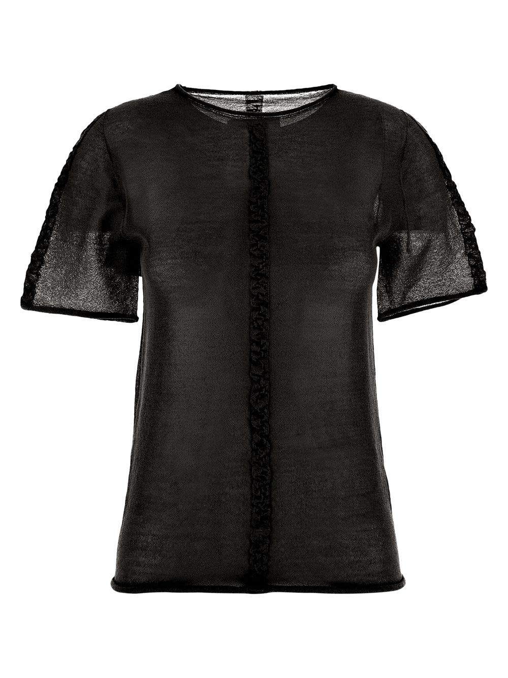 crew neck top. Semi-transparent. MORE INFORMATION Gender: Woman Color: black Manufacturer Code: UK7180UW900 Composition: 78%CO22%NY Made In: ITALY Brand: Uma Wang Season Code: SS25 Size Label: STANDARD