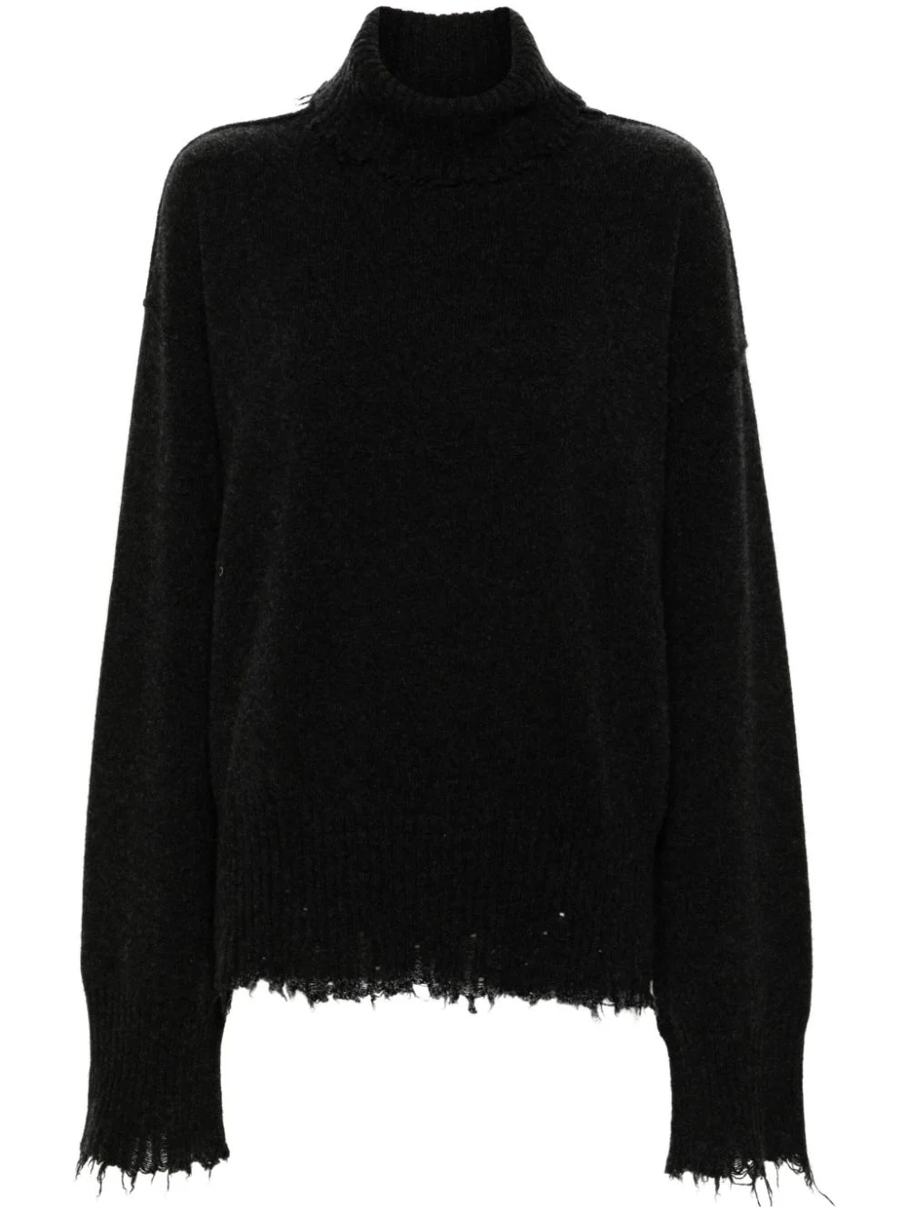 high-neck sweater Highlights - Charcoal grey - Cashmere - Ribbed knit - Raw-cut finish - Roll neck - Drop shoulder - Long sleeves - Ribbed cuffs and hem - Any differences between the piece pictured and the one you receive are symbols of its premium craftsmanship, quality and uniqueness. Made in Italy Composition Cashmere 100% SIZE & FIT Model measurements Height 5 ft 10 in(1.78 m) Bust/Chest 31.49 in(80 cm) Hips 37 in(94 cm) Waist 23.62 in(60 cm) FittingInformation Designed to be unstructured, offering a loose fit throughout Made with a midweight knit, this piece offers some stretch This piece fits true to size – take your usual size Washing instructions Hand Wash