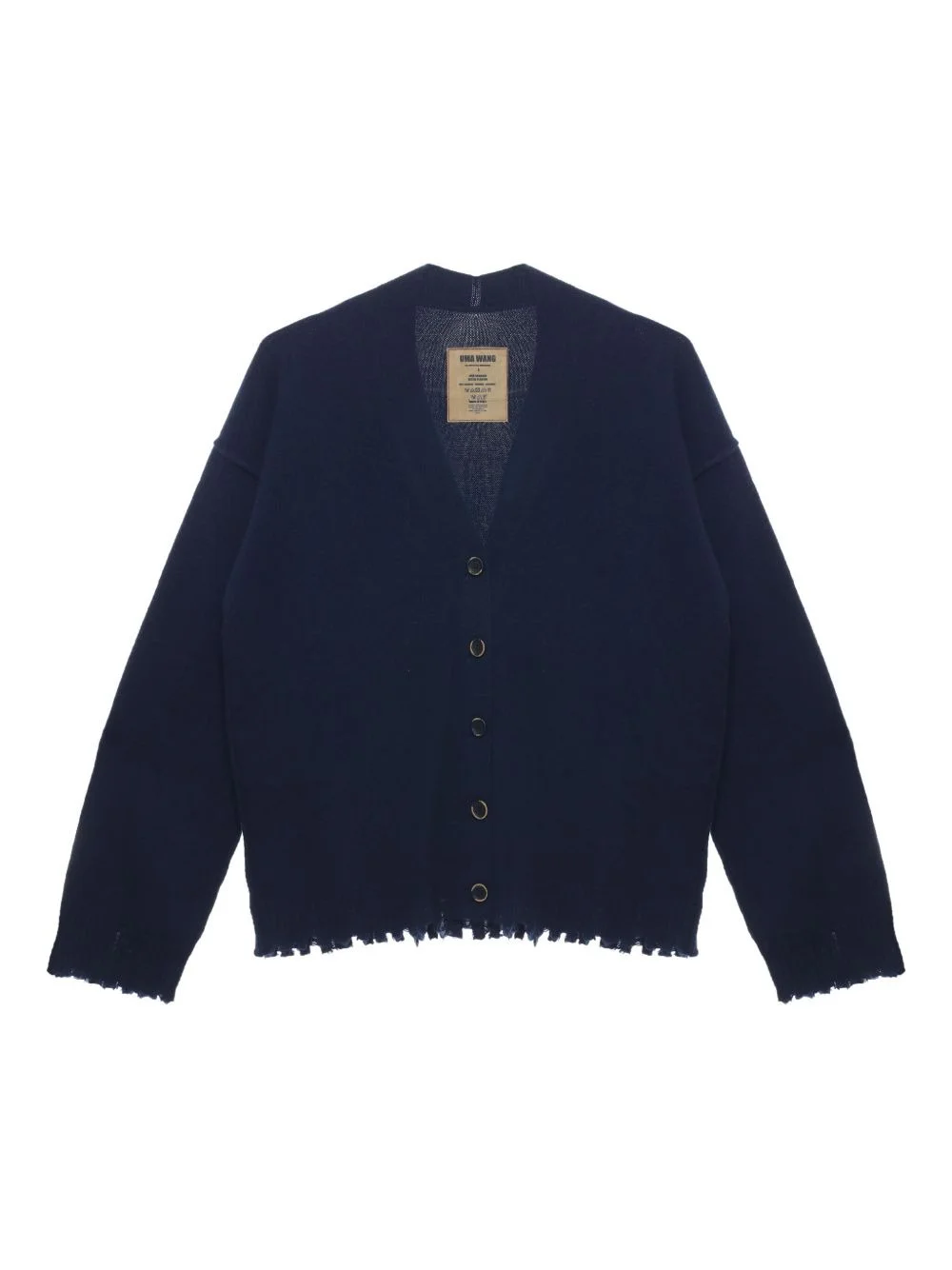 Over frayed button-down cardigan Highlights - Navy blue - Cashmere wool blend - V-neck - Button fastening - Frayed hem - Long sleeves Made in Italy Composition Cashmere 100% Washing instructions Hand Wash