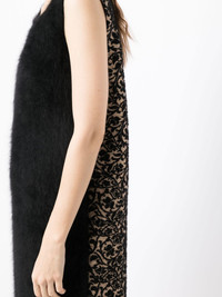 panelled wool midi dress black beige wool contrasting panel detail brocade effect shift style rear slit round neck sleeveless raw-cut hem ankle-length Made in Italy Composition Wool 100% SIZE & FIT Model measurements Height 5 ft 11 in(1.8 m) Bust/Chest 28.34 in(72 cm) Hips 35.43 in(90 cm) Waist 23.62 in(60 cm) FittingInformation This piece fits true to size. We recommend you get your regular size Cut for a loose fit Made with a mid-weight non-stretch fabric