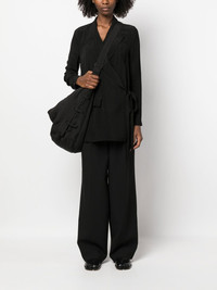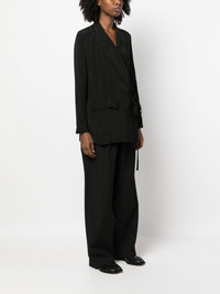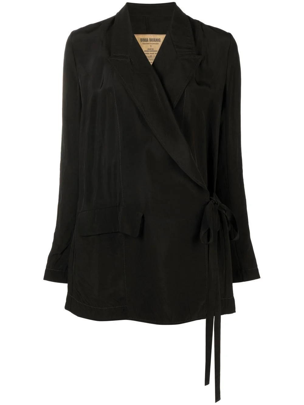 peak-lapels tie-waist blazer black peak lapels front tie fastening long sleeves front flap pockets straight hem Made in Italy Composition Viscose 100% SIZE & FIT Model measurements Height 5 ft 10 in(1.78 m) Bust/Chest 31.49 in(80 cm) Hips 37 in(94 cm) Waist 23.62 in(60 cm) FittingInformation This piece fits true to size. We recommend you get your regular size Cut for a loose fit Made with a mid-weight non-stretch fabric