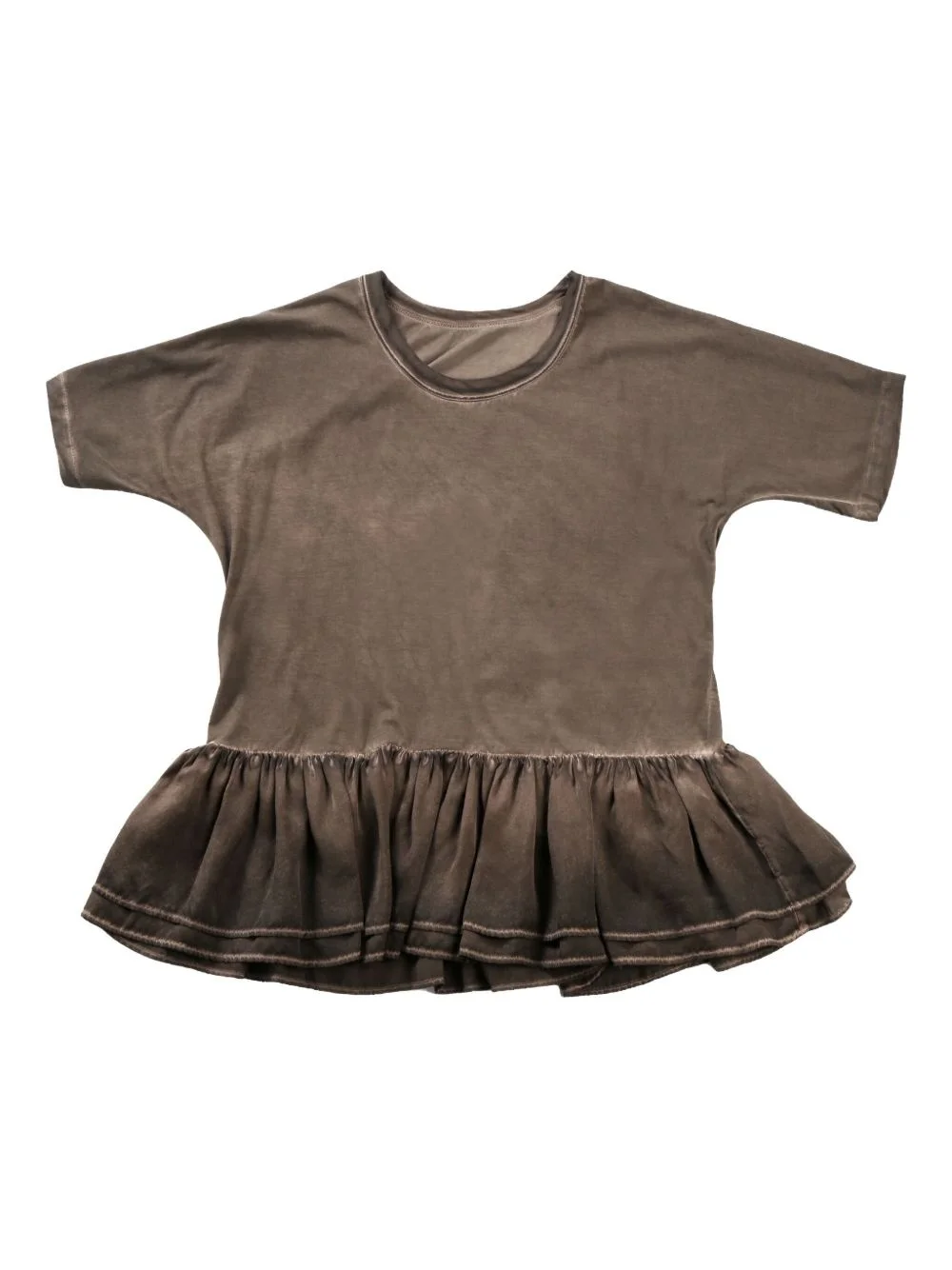 peplum T-shirt Highlights - Coffee brown - Round neck - Short sleeves - Stonewashed Made in Italy Composition Silk 100%, Cotton 95%, Elastodiene 5%