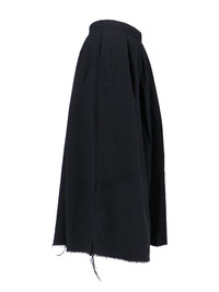 UMA WANG PLEATED MIDI SKIRT IN BLACK WOOL AND LINEN BLEND, HIGH WAIST, SIDE HOOK CLOSURE, TWO SIDE POCKETS, RAW CUT HEM. PRODUCT INFO PRODUCT CODE UP2008UW900 COMPOSITION: 54% WOOL, 33% LINEN, 13% POLYAMIDE, LINING: 100% COTTON SIZE AND FIT: REGULAR FIT MADE IN: ITALY