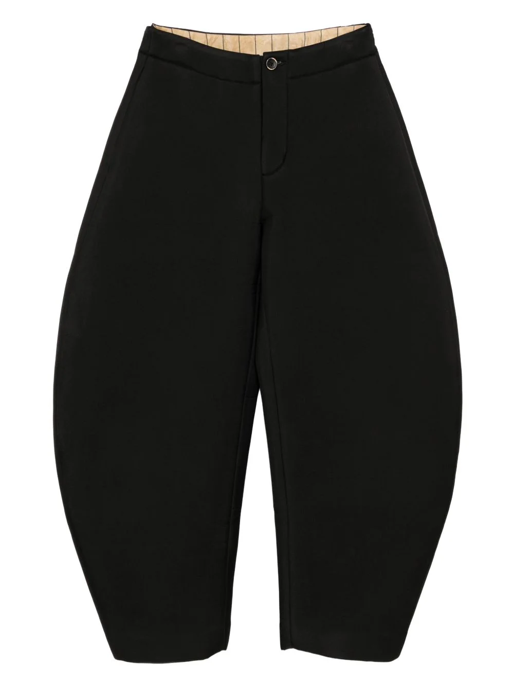 Pollock trousers Highlights - Black - Front button and zip fastening - Two side inset pockets - Two rear welt pockets Made in Italy Composition Viscose 63%, Polyester 30%, Polyurethane 7% SIZE & FIT Model measurements Height 5 ft 10 in(1.77 m) Bust/Chest 30.31 in(77 cm) Hips 34.25 in(87 cm) Waist 25.19 in(64 cm) FittingInformation Designed for a relaxed tapered cut, these trousers allow for a close fit at the waist and offer a loose fit at the thighs, with a closer fit toward the ankles Made from a midweight non-stretch fabric Washing instructions Hand Wash