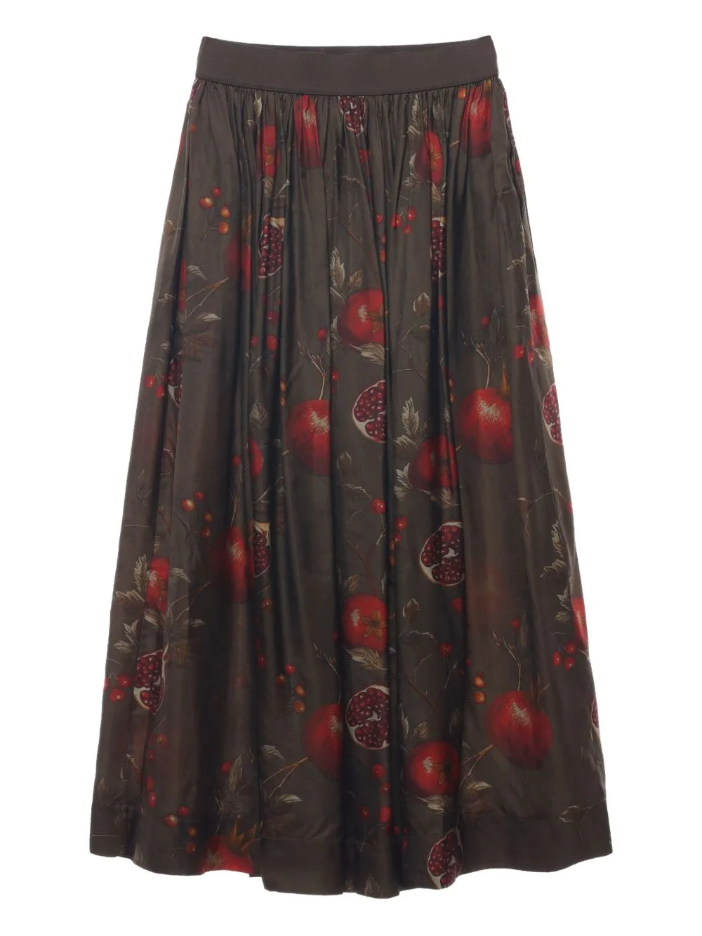 pomegranate-print pleated maxi skirt Highlights - Dark-brown - Pomegranate print - Pleated - Elasticated waistband Made in Italy Composition Cupro 50%, Viscose 50% Washing instructions Read Manufacturer Guidelines
