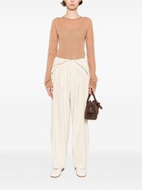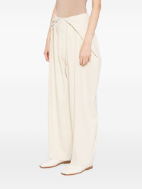 Pride trousers Highlights - Cream white - Concealed front button, hook and zip fastening - Two side slash pockets - Two rear welt pockets Made in Italy Composition Linen/Flax 67%, Viscose 32%, Elastane 1% SIZE & FIT Model measurements Height 5 ft 9 in(1.76 m) Bust/Chest 30.7 in(78 cm) Hips 33.46 in(85 cm) Waist 24.4 in(62 cm) FittingInformation Designed for a relaxed tapered cut, these trousers allow for a close fit at the waist and offer a loose fit at the thighs, with a closer fit toward the ankles Made from a midweight stretch fabric, this piece offers elasticity and flexibility when worn