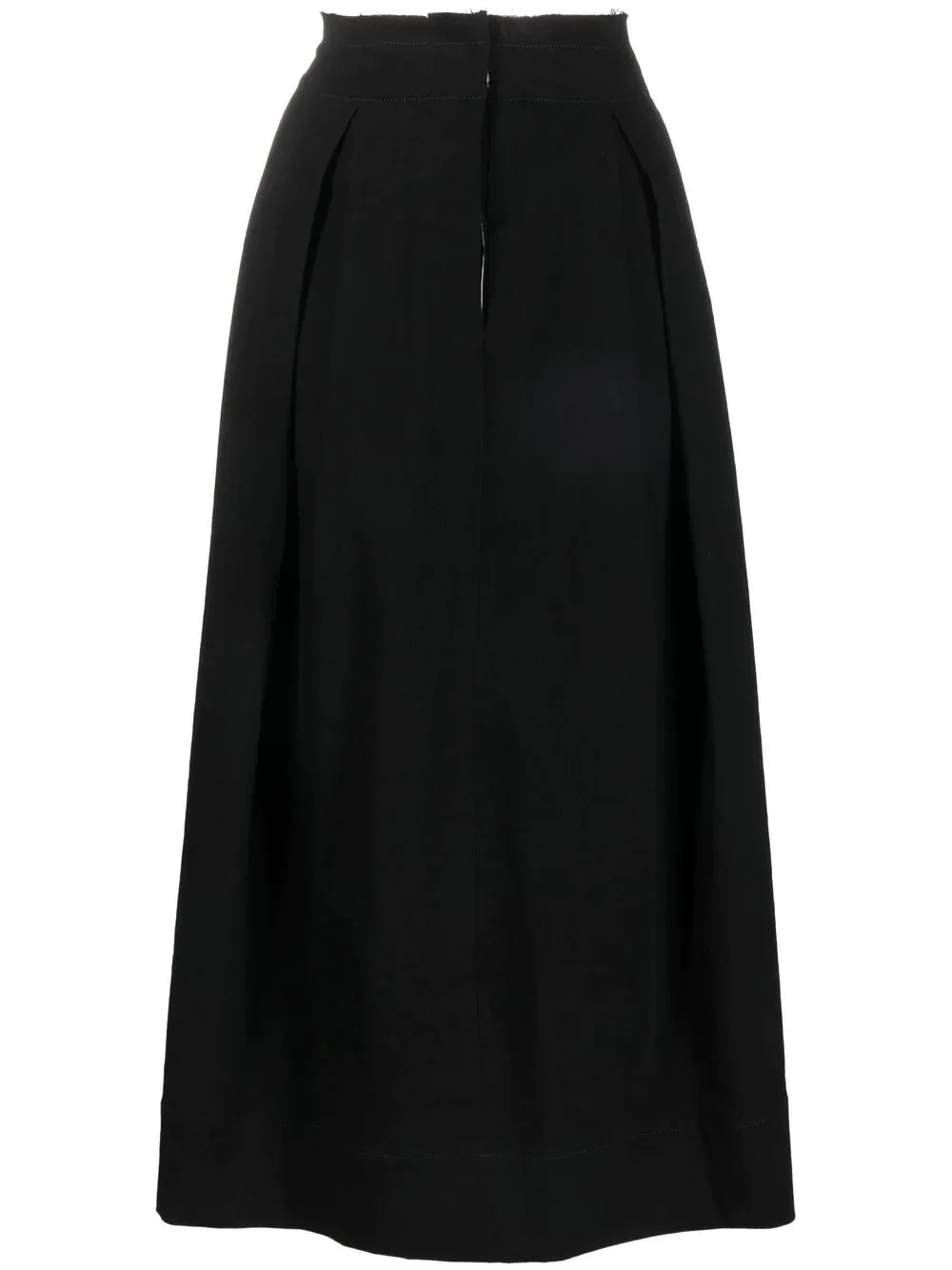 raw-edge pleated long skirt black linen blend high waist raw edge pleat detailing concealed front fastening long length Made in Italy Composition Linen/Flax 54%, Viscose 44%, Spandex/Elastane 2% SIZE & FIT Model measurements Height 5 ft 11 in(1.8 m) Bust/Chest 31.49 in(80 cm) Hips 35.82 in(91 cm) Waist 24.8 in(63 cm) FittingInformation This piece fits true to size. We recommend you get your regular size Designed for a loose fit with a close fit at the waist Made with a mid-weight stretch fabric Washing instructions Hand Wash