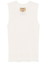 ribbed-knit vest Highlights - Ecru - V-neck - Sleeveless - Distressed effect Made in Italy Composition Cotton 70%, Silk 30% SIZE & FIT Model measurements Height 5 ft 10 in(1.77 m) Bust/Chest 33.07 in(84 cm) Hips 37 in(94 cm) Waist 24.8 in(63 cm) FittingInformation Designed for a slim fit that sits just away from the body offering a close yet comfortable fit Made with a midweight knit, this piece offers some stretch