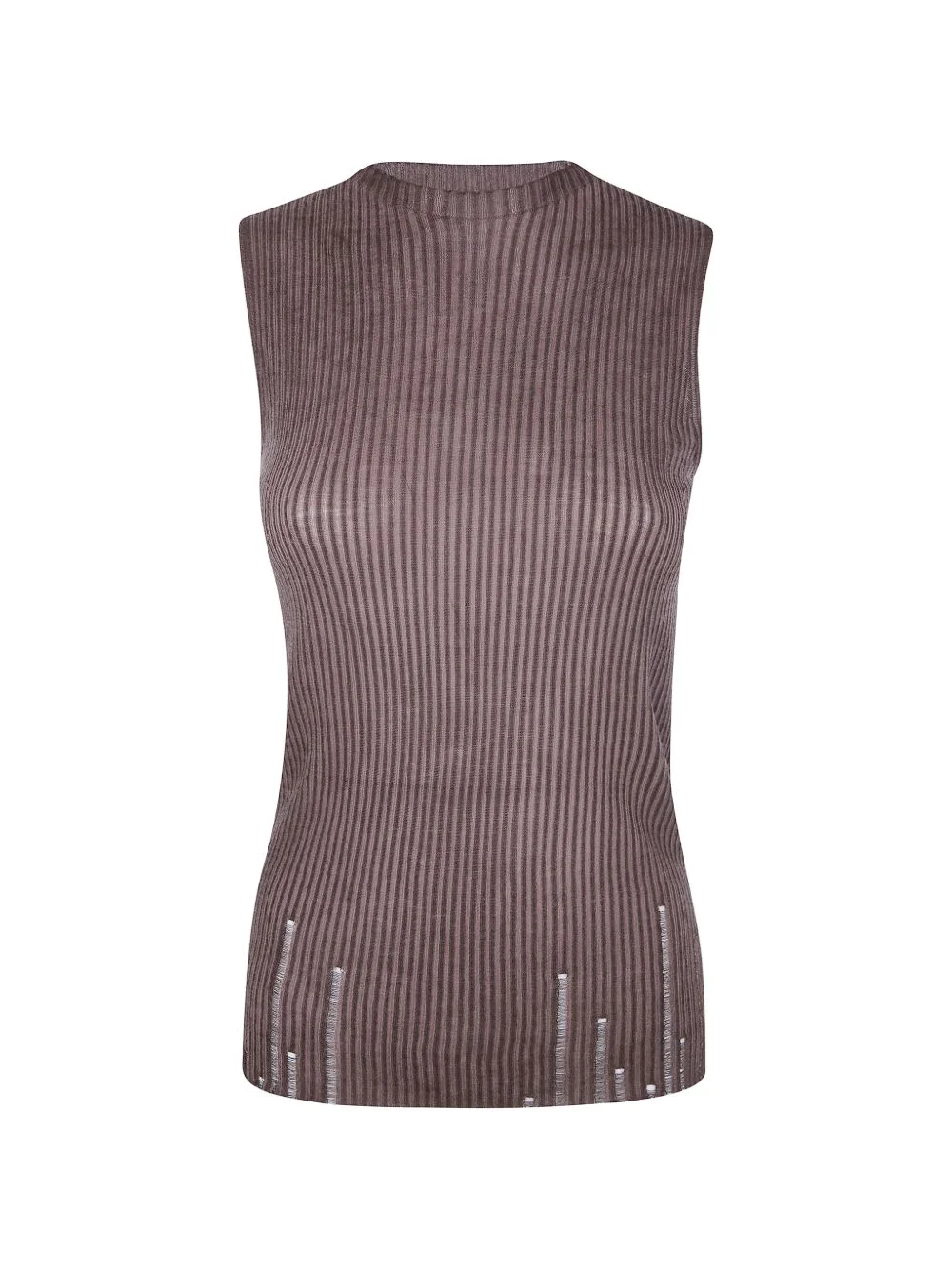 ribbed sleeveless top Highlights - Brown - Ribbed knit - Panel detail - Sleeveless - Round-neck - Wool Imported Composition Wool 100% Washing instructions Read Manufacturer Guidelines