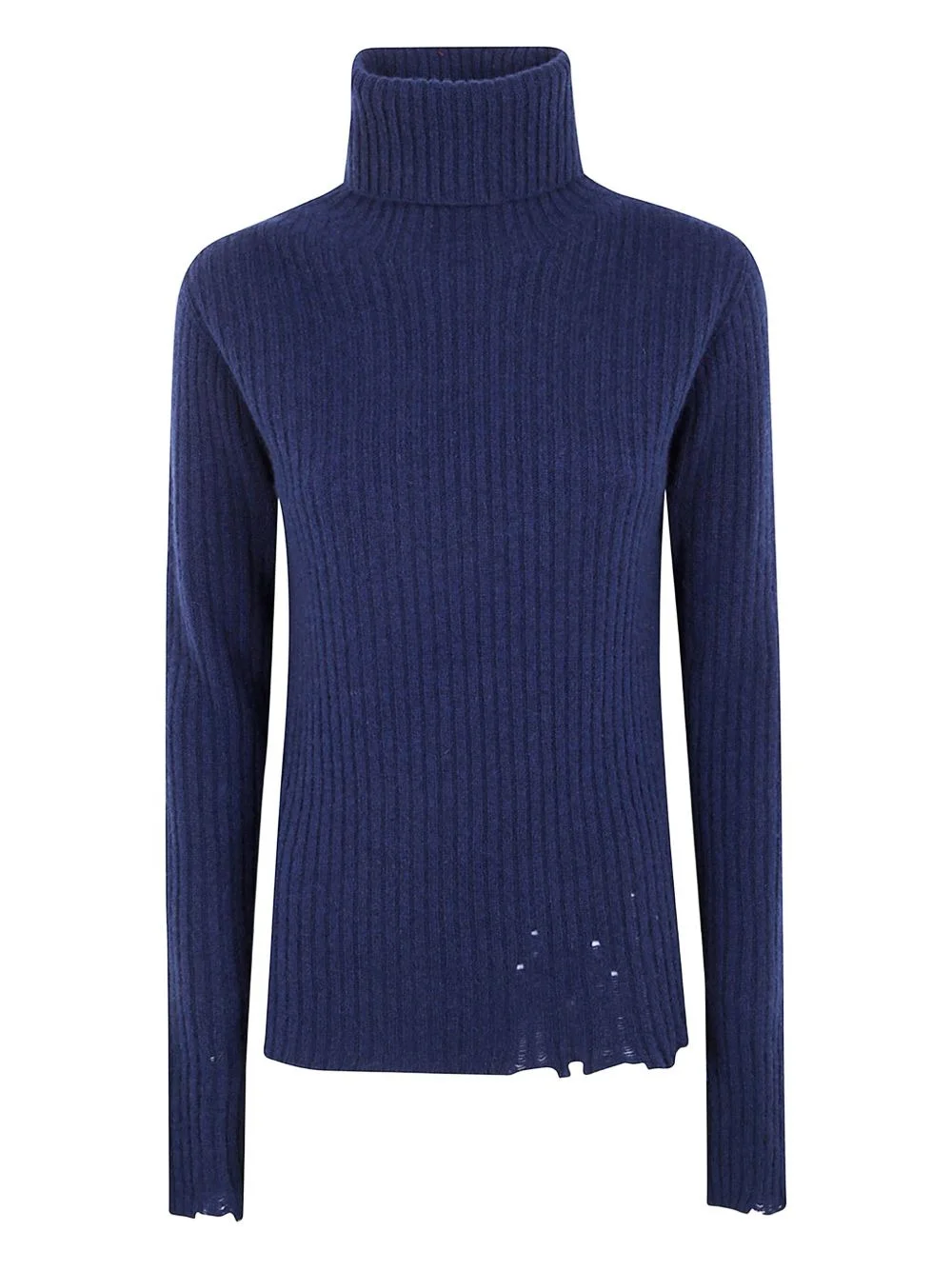 ribbed turtleneck sweater Highlights - Dark blue - Ribbed texture - Turtleneck neck - Long sleeves - Distressed hem - Cashmere-wool Imported Composition Cashmere 100% Washing instructions Read Manufacturer Guidelines