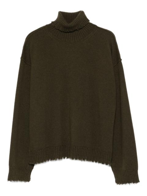 ruffled roll-neck sweater Highlights - Grey - Roll neck - Ruffled trim - Long sleeves - Straight hem - Knitted construction Imported Composition Cashmere 100% Washing instructions Read Manufacturer Guidelines