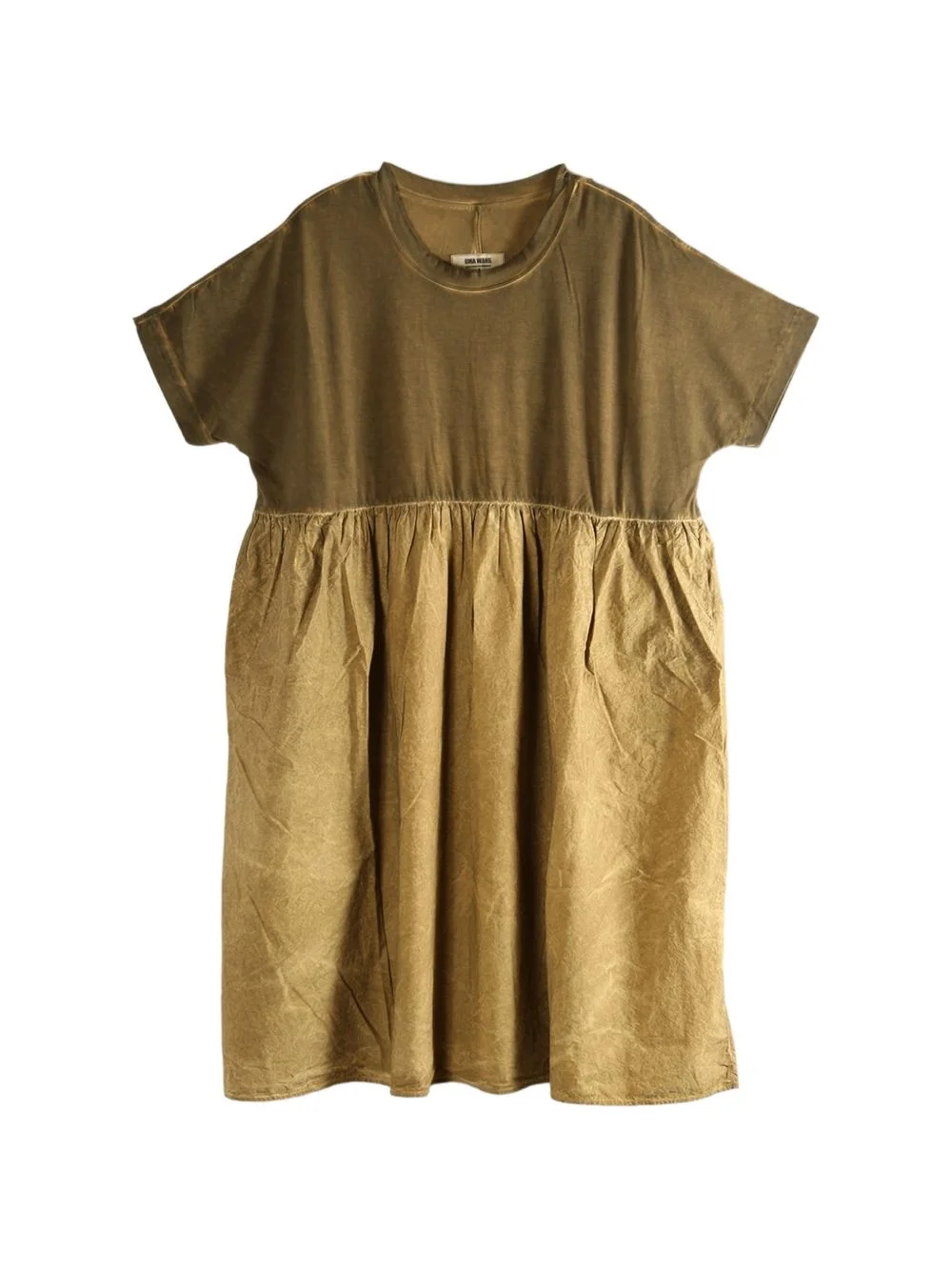 short-sleeves midi dress yellow short sleeves crew neck side seam pockets Made in Italy Composition Fabric 100% Washing instructions Read Manufacturer Guidelines