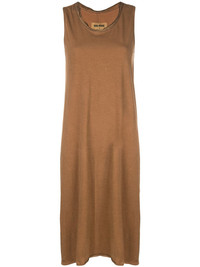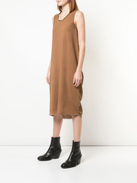 sleeveless midi jersey dress Orange brown stretch cotton sleeveless midi jersey dress from Uma Wang featuring a scoop neck, an unfinished hem, a shift silhouette and back pleated details. Made in Italy Composition Cotton 95%, Spandex/Elastane 5% SIZE & FIT Model measurements Height 5 ft 10 in(1.77 m) Bust/Chest 31.88 in(81 cm) Hips 33.85 in(86 cm) Waist 24.01 in(61 cm) Washing instructions Hand Wash