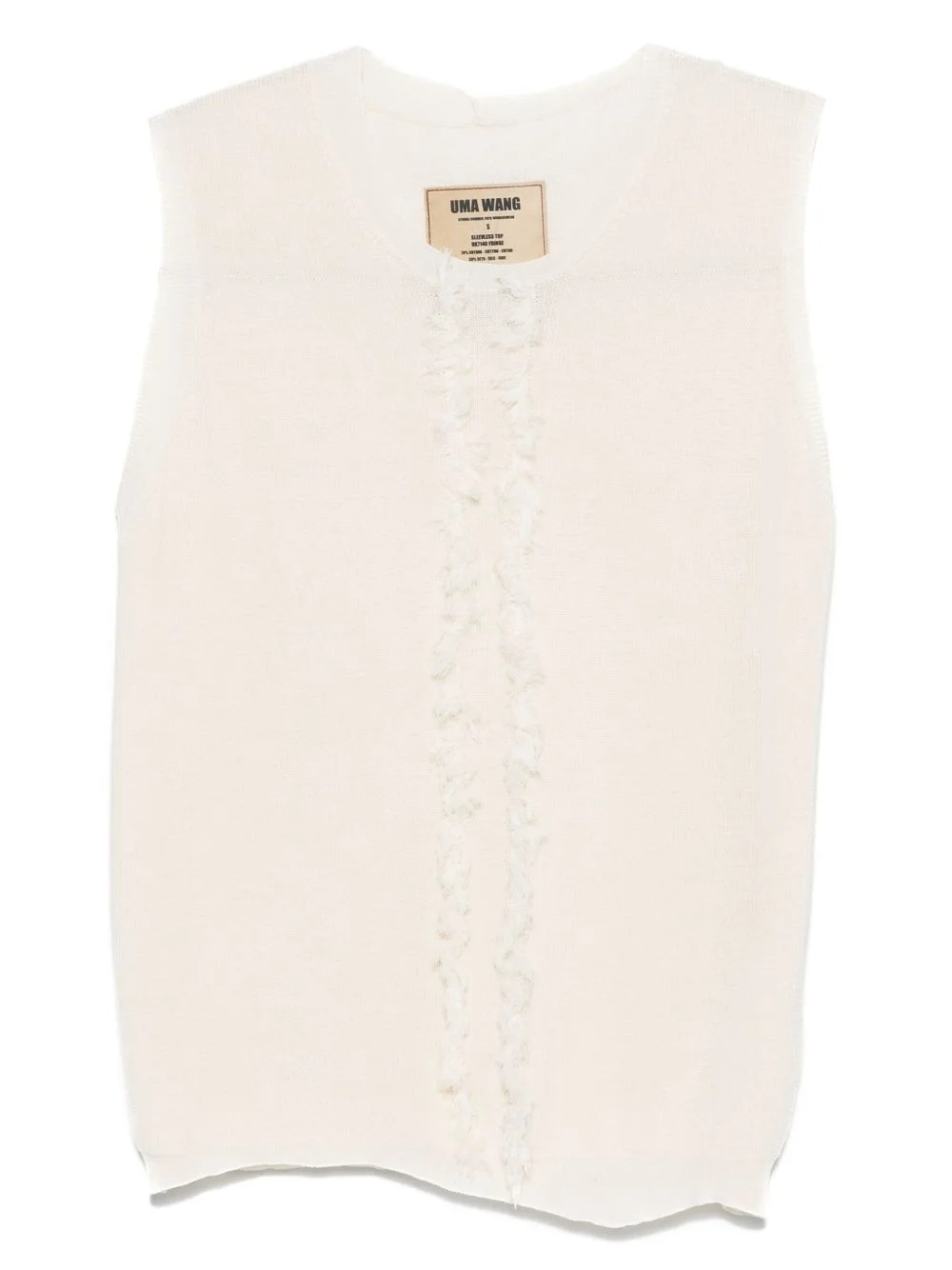 sleeveless top Highlights - Light beige - Crew neck - Frayed detailing - Asymmetric hem Made in Italy Composition Cotton 70%, Silk 30% Washing instructions Hand Wash
