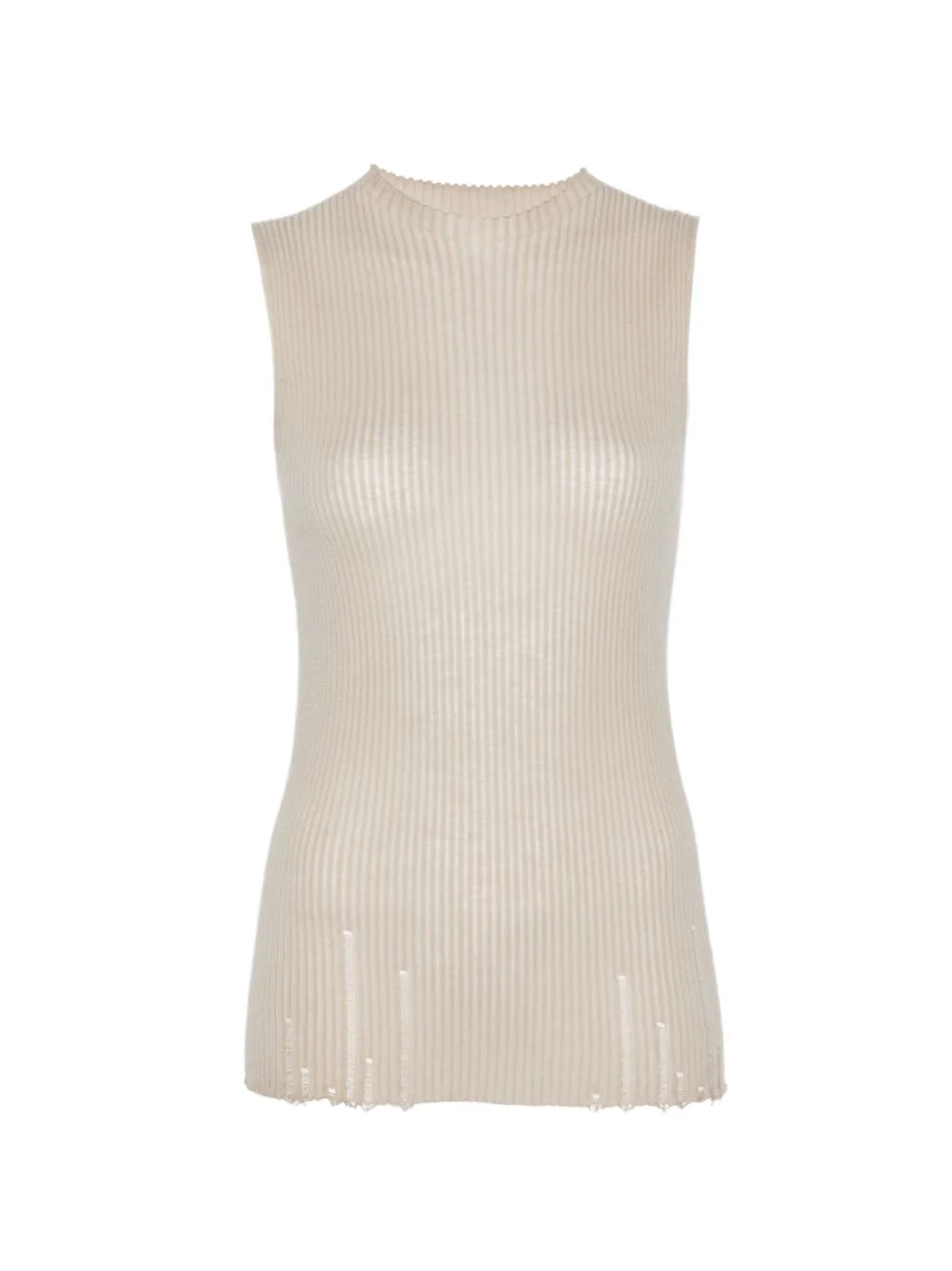 ribbed sleeveless top Highlights - Beige - Ribbed knit - Sleeveless - Distressed hem - Round neck Made in Italy Composition Wool 100% Washing instructions Hand Wash