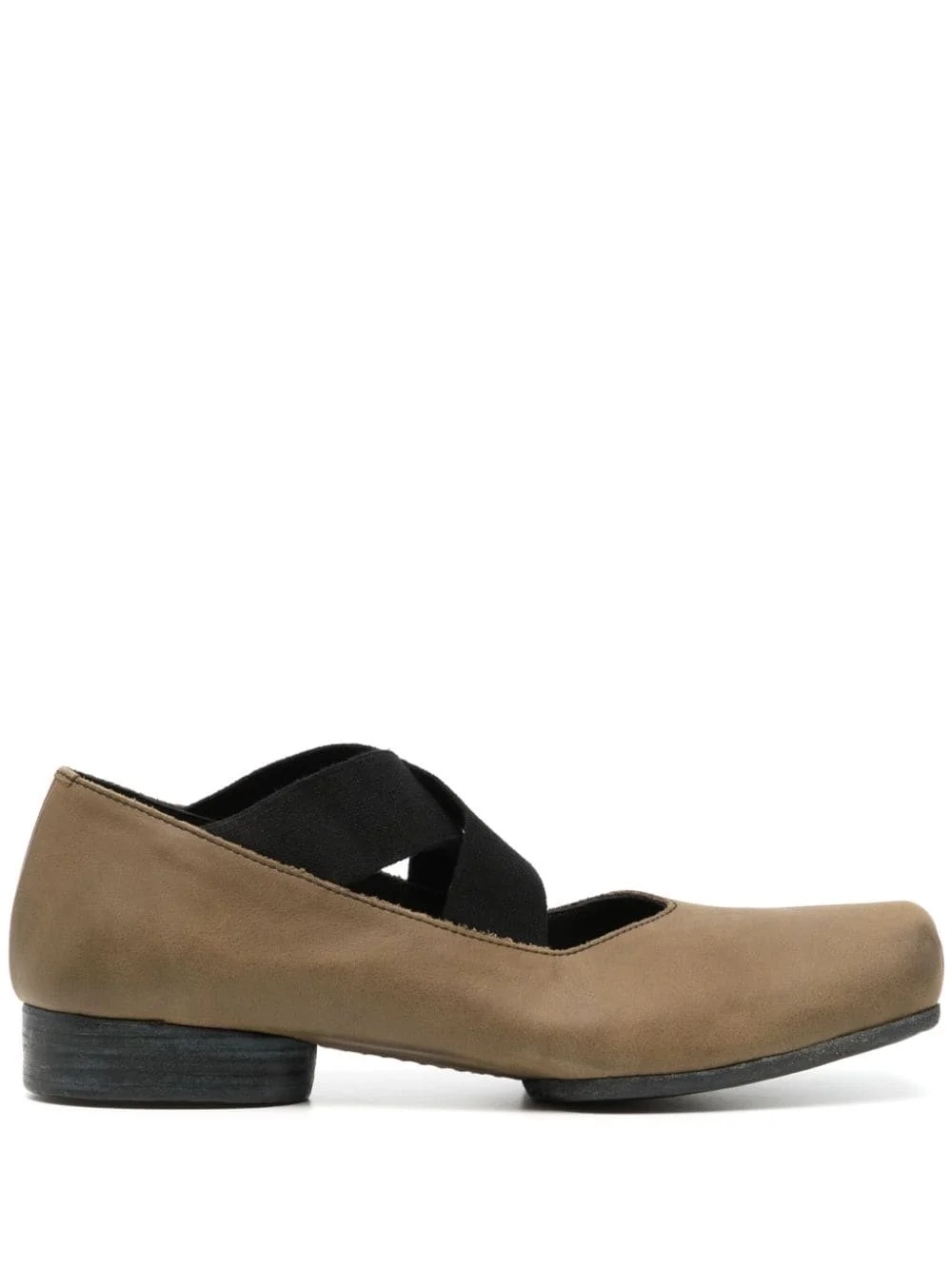 square-toe leather ballerina shoes Highlights - Olive green/black - Calf leather - Smooth grain - Contrast stitching - Square toe - Crossover strap detail - Branded leather insole - Flat leather sole Made in Italy Composition Outer: Calf Leather 100% Lining: Leather 100% Sole: Leather 100% SIZE & FIT Measurement Sole height 1.18 in(3 cm)