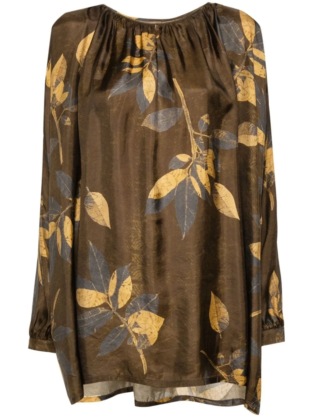 Tammy motif-print blouse Highlights - Brown/multicolour - Motif print - Gathered detailing at the boat neck - Long sleeves - Buttoned cuffs - Straight hem Made in Italy Composition Viscose 50%, Cupro 50% SIZE & FIT Model measurements Height 5 ft 10 in(1.77 m) Bust/Chest 32.28 in(82 cm) Hips 35.03 in(89 cm) Waist 25.19 in(64 cm) FittingInformation Designed to be unstructured, offering a loose fit throughout Made from a lightweight non-stretch fabric This piece fits true to size – take your usual size Washing instructions Hand Wash