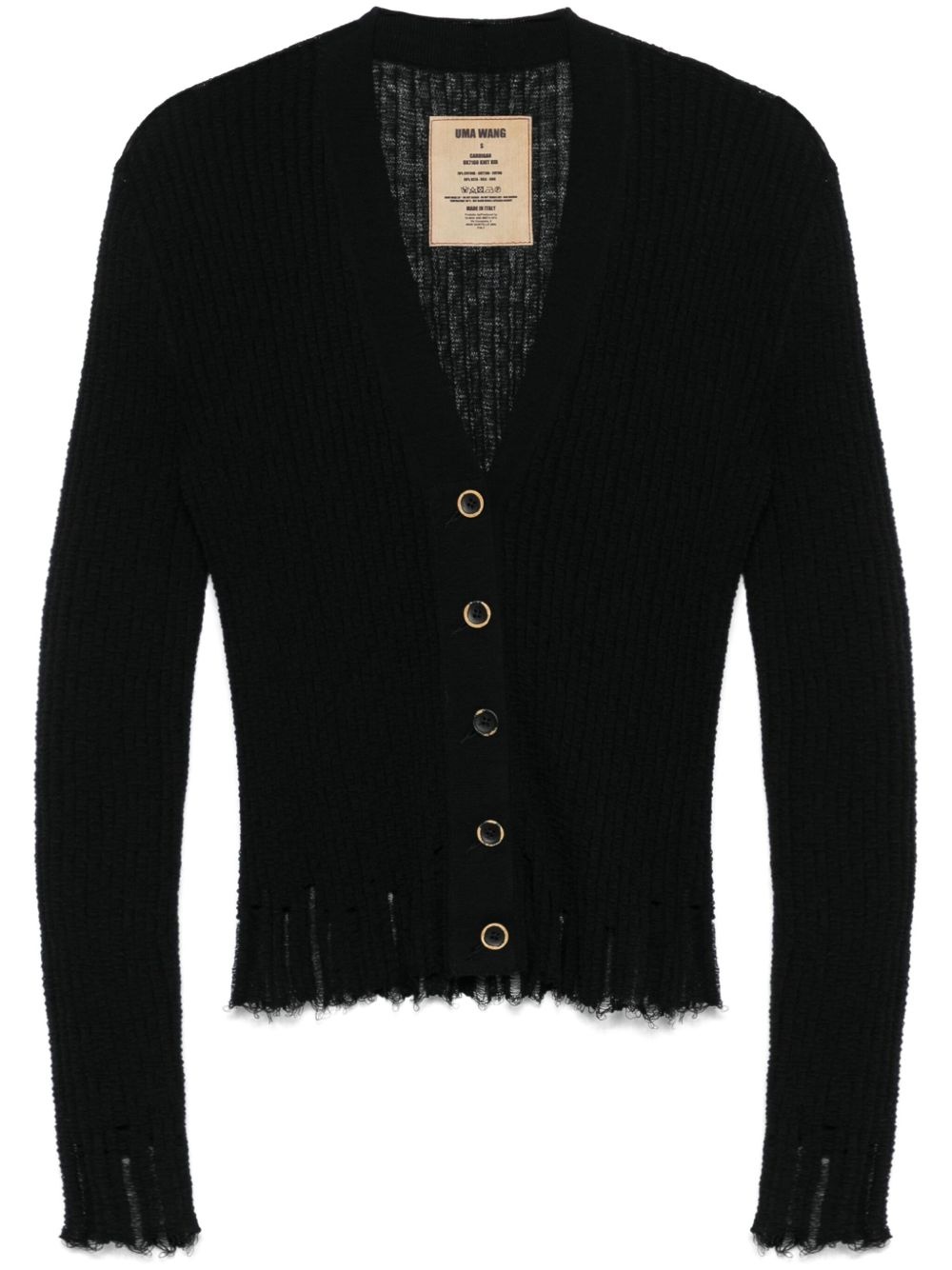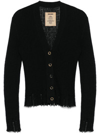 ribbed cardigan Highlights - Black - Front button fastening - Long sleeves - Raw-cut hem Made in Italy Composition Cotton 70%, Silk 30% SIZE & FIT Model measurements Height 5 ft 10 in(1.78 m) Bust/Chest 33.85 in(86 cm) Hips 36.61 in(93 cm) Waist 25.19 in(64 cm) FittingInformation Designed for a slim fit that sits just away from the body offering a close yet comfortable fit Made with a lightweight knit, this piece offers some stretch