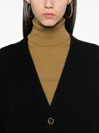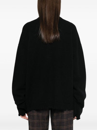 Over cardigan Uma Wang presents an unique take on the classic cardigan with this cashmere iteration. The timeless black-hued garment is decorated with frayed detailing, a signature touch for the designer. Highlights - Black - Cashmere - Knitted construction - Brushed finish - Front button fastening - Ribbed v-neck - Drop shoulder - Long sleeves - Ribbed cuffs and hem - Frayed edge Made in Italy Composition Cashmere 100% SIZE & FIT Model measurements Height 5 ft 10 in(1.78 m) Bust/Chest 33.85 in(86 cm) Hips 36.61 in(93 cm) Waist 26.77 in(68 cm) FittingInformation Designed to be unstructured, offering a loose fit throughout Made with a midweight knit, this piece offers some stretch