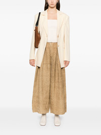 Textured Trousers Highlights - Light brown - Textured - Elasticated waistband - Wide leg - All-over pattern - Seam detail Imported Composition Linen/Flax 56%, Viscose 44% SIZE & FIT Model measurements Height 5 ft 9 in(1.76 m) Bust/Chest 32.28 in(82 cm) Hips 35.82 in(91 cm) Waist 25.59 in(65 cm) FittingInformation Designed with a wide-leg cut, these trousers allow for a close fit at the waist and offer a loose and roomy fit over the leg The elasticated waist allows for a comfortable fit Made from a midweight non-stretch fabric Washing instructions Dry Clean Only