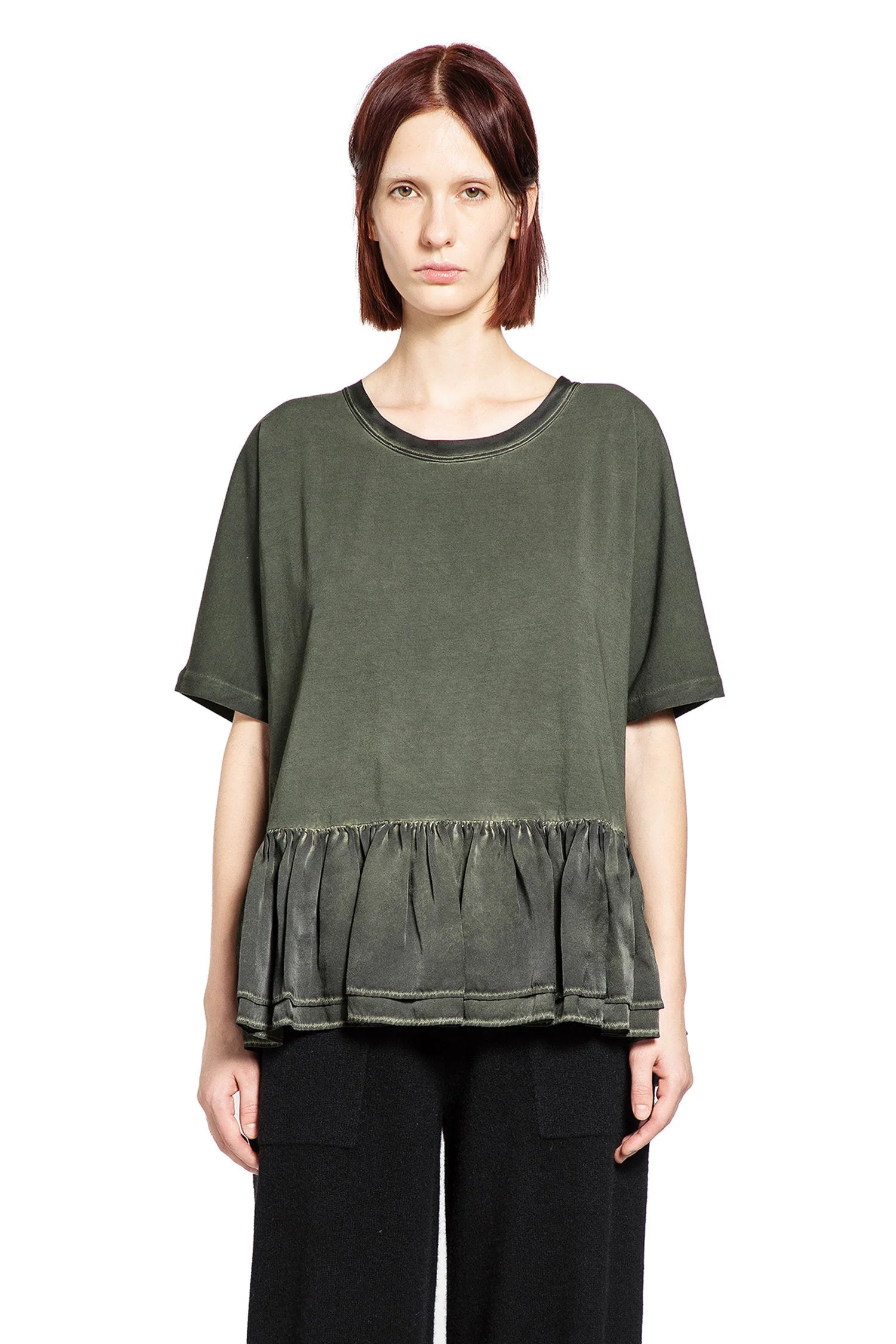 DESCRIPTION - Green - Overdyed cotton jersey - Round neck - Layered ruffled hem - Back signature stitching - Relaxed fit DETAILS - Made in: Italy - Composition: 95% Cotton 5% Elastane - Model code: UP1036 UW400 - Item ID: 9768566587734