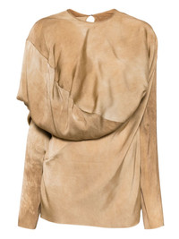 Trek top Highlights - Cognac brown - Rear hook and eye fastening - Long sleeves - Draped design Made in Italy Composition Silk 94%, Elastane 6% SIZE & FIT Model measurements Height 5 ft 10 in(1.77 m) Bust/Chest 30.31 in(77 cm) Hips 34.25 in(87 cm) Waist 25.19 in(64 cm) FittingInformation Designed for a relaxed fit, this piece allows for comfort and movement when worn Made from a lightweight stretch fabric, this piece offers elasticity and flexibility when worn Washing instructions Hand Wash