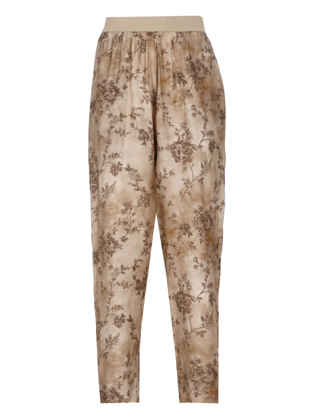 Palmer trousers Highlights - Light beige - Elasticated waistband - Two side slit pockets - All-over floral print Made in Italy Composition Viscose 50%, Cupro 50% Washing instructions Read Manufacturer Guidelines