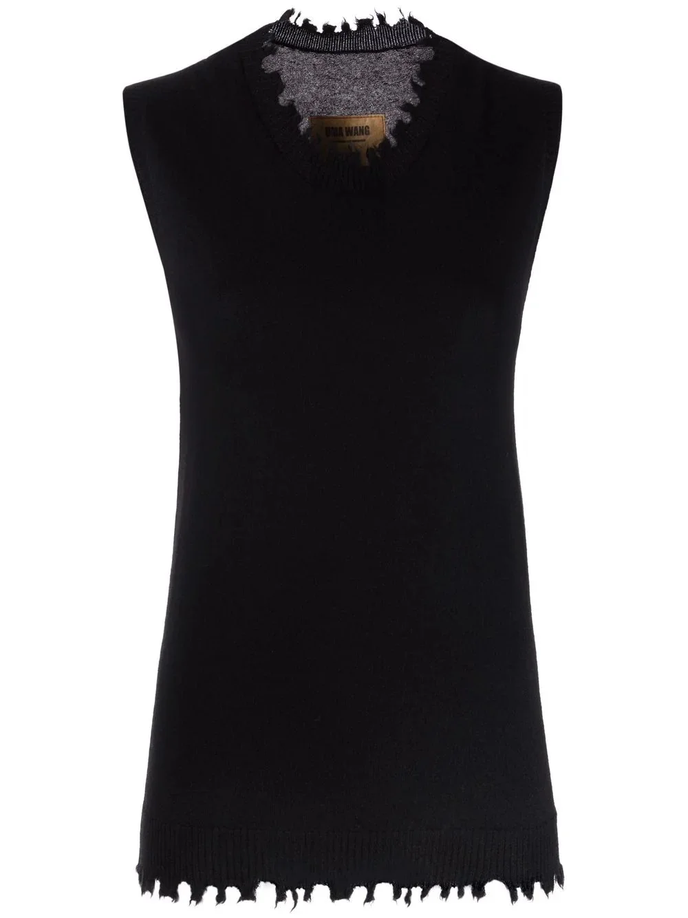tuft edge top Uma Wang's innovative use of materials is showcased on this black cashmere sleeveless top that features tuft edges for a distinct finish. Made in Italy Composition Cashmere 100% SIZE & FIT Model measurements Height 5 ft 9 in(1.75 m) Bust/Chest 31.49 in(80 cm) Hips 34.64 in(88 cm) Waist 24.01 in(61 cm) FittingInformation This piece fits true to size. We recommend you get your regular size Cut for a relaxed fit Made with a mid-weight fabric Washing instructions Hand Wash