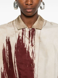 Tyesha shirt Highlights - Beige/blood red - Twill weave - Satin finish - Abstract pattern print - Decorative stitching - Classic collar - Front button fastening - Long sleeves - Buttoned cuffs - Curved hem - Any differences between the piece pictured and the one you receive are symbols of its premium craftsmanship, quality and uniqueness. Made in Italy Composition Viscose 50%, Cupro 50% SIZE & FIT Model measurements Height 5 ft 10 in(1.78 m) Bust/Chest 31.49 in(80 cm) Hips 37 in(94 cm) Waist 23.62 in(60 cm)