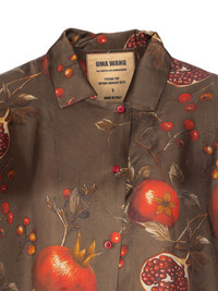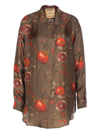 pomegranate-print asymmetrical-buttoned top Highlights - Brown - Pomegranate print - Long sleeves - Button cuffs - Regular collar Made in Italy Composition Viscose 50%, Cupro 50% Washing instructions Read Manufacturer Guidelines