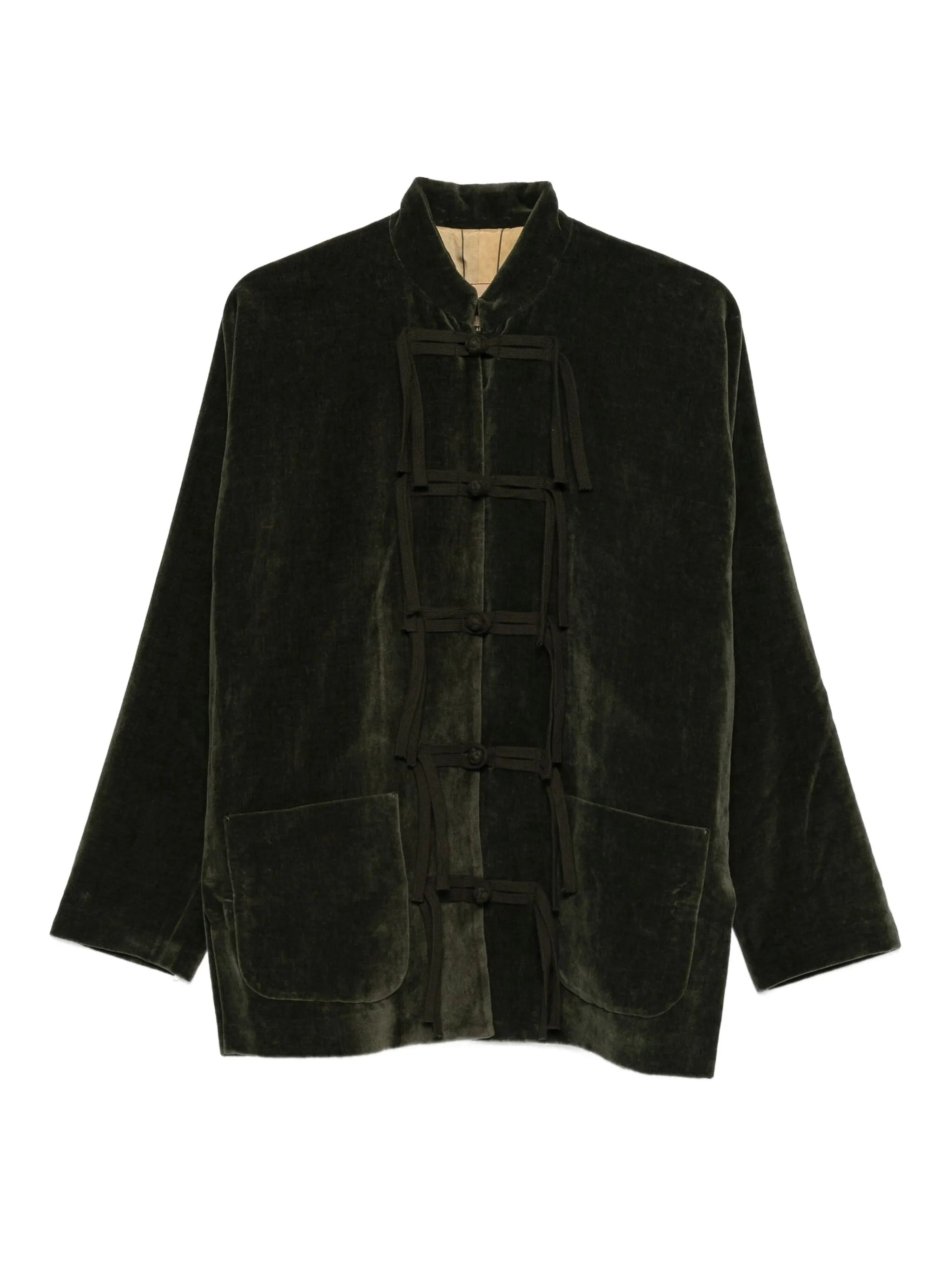 green velvet texture knotted fastening long sleeves patch pockets - Color: GREEN - Made in: Italy - Designer Style ID: UP6017 UW490 Composition and care Outer Composition Cotton: 55.0%, Outer Composition Linen/flax: 45.0%, Lining Composition Cupro: 50.0%, Lining Composition Viscose: 50.0%