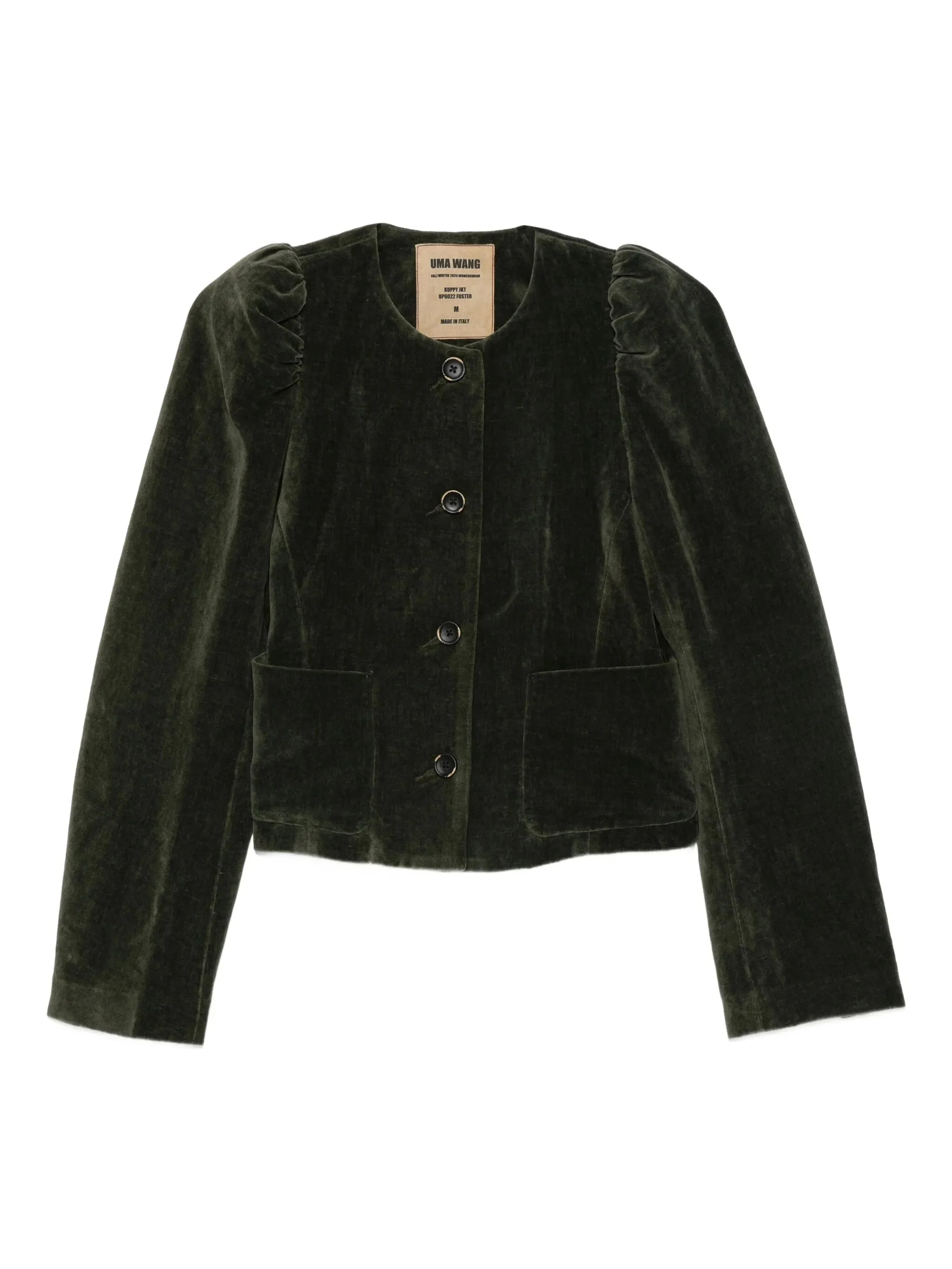 dark green velvet texture button fastening long sleeves patch pockets - Color: GREEN - Made in: Italy - Designer Style ID: UP6022 UW490 Composition and care Outer Composition Cotton: 55.0%, Outer Composition Linen/flax: 45.0%, Lining Composition Cupro: 50.0%, Lining Composition Viscose: 50.0%