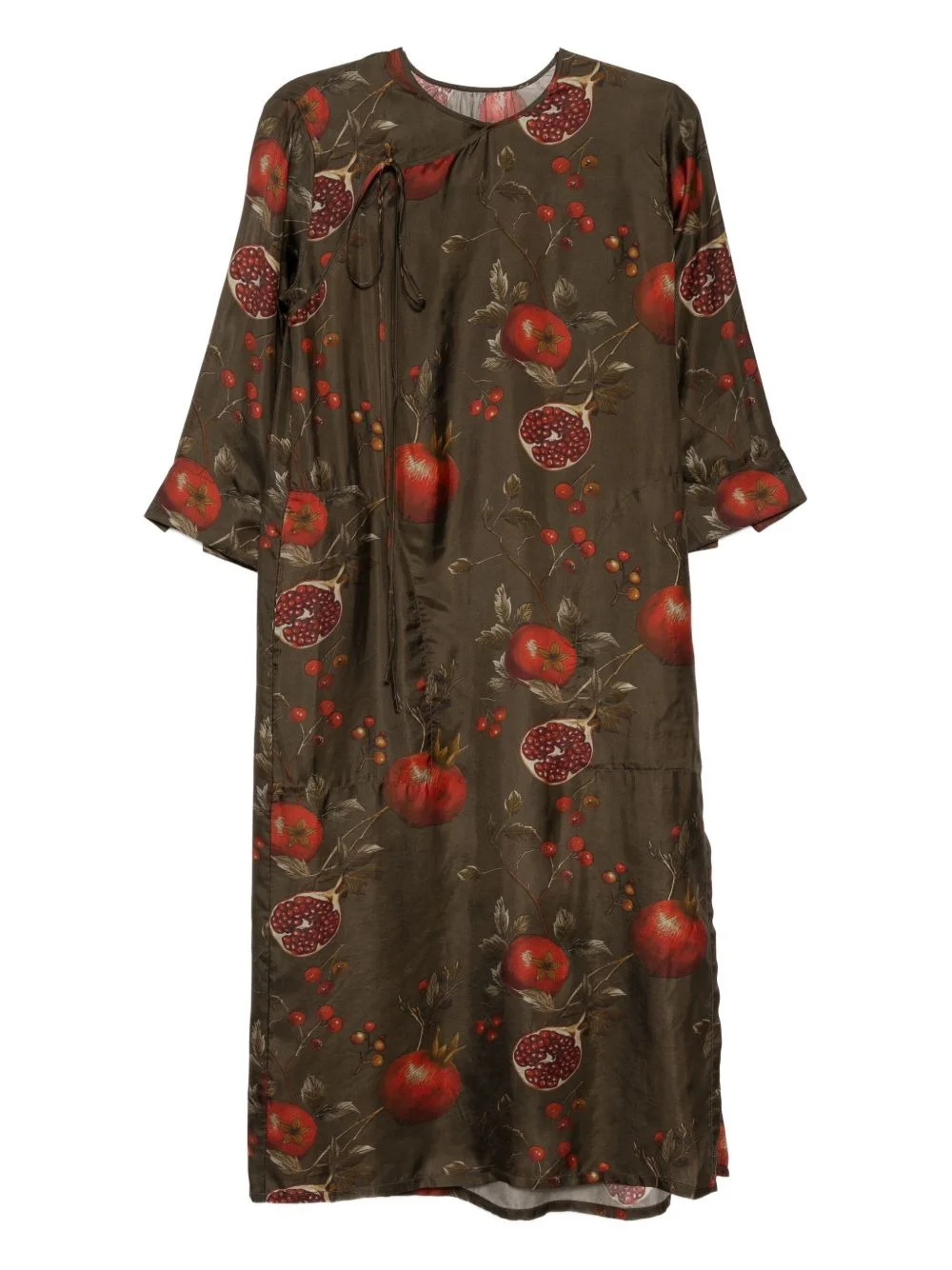 graphic-print dress Highlights - Cedar brown - Self-tie fastening - Crew neck - Three-quarter length sleeves - Side slit Made in Italy Composition Viscose 50%, Cupro 50% SIZE & FIT Model measurements Height 5 ft 10 in(1.78 m) Bust/Chest 30.31 in(77 cm) Hips 37 in(94 cm) Waist 24.8 in(63 cm) FittingInformation Designed to be unstructured, offering a loose fit throughout Made from a lightweight non-stretch fabric Washing instructions Hand Wash