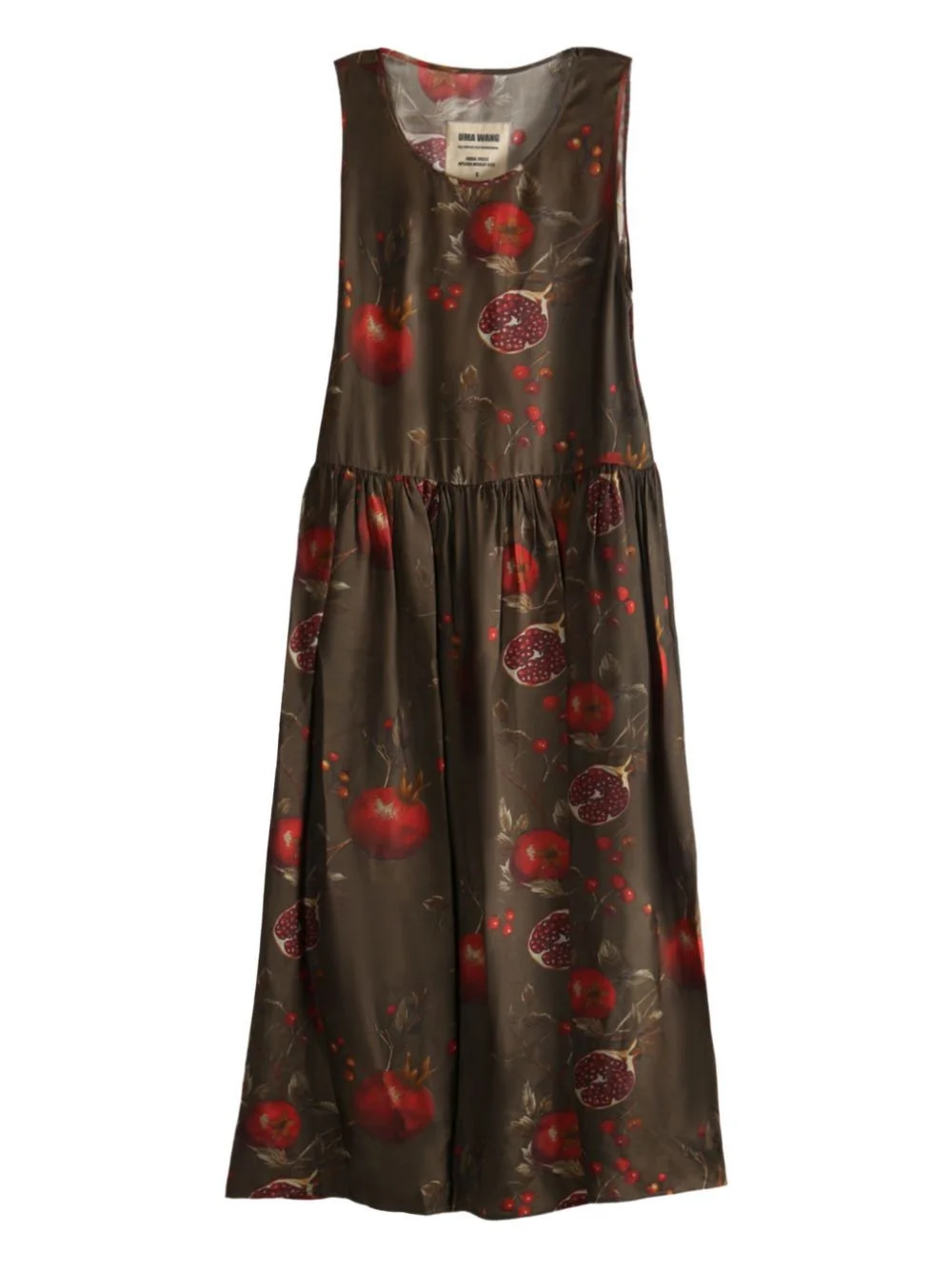 Ardal pomegranate-print smock dress Highlights - Dark brown - Pomegranate print - Sleeveless - Round neck - Smocked bodice - Gathered skirt Made in Italy Composition Body: Viscose 50%, Cupro 50%