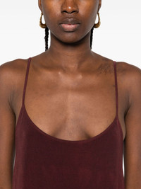 spaghetti-strap slip maxi dress Highlights - Dark red - Spaghetti straps - Slip style - Straight hem - Round neck Made in Italy Composition Modal 93%, Elastane 7% SIZE & FIT Model measurements Height 5 ft 11 in(1.8 m) Bust/Chest 32.67 in(83 cm) Hips 36.22 in(92 cm) Waist 24.4 in(62 cm) Washing instructions Hand Wash