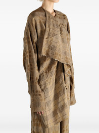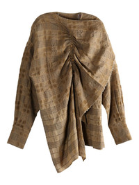 draped checked top Highlights - Brown - Checked pattern - Draped design - Long sleeves - Frayed edges Made in Italy Composition Virgin Wool 55%, Viscose 45% Washing instructions Read Manufacturer Guidelines