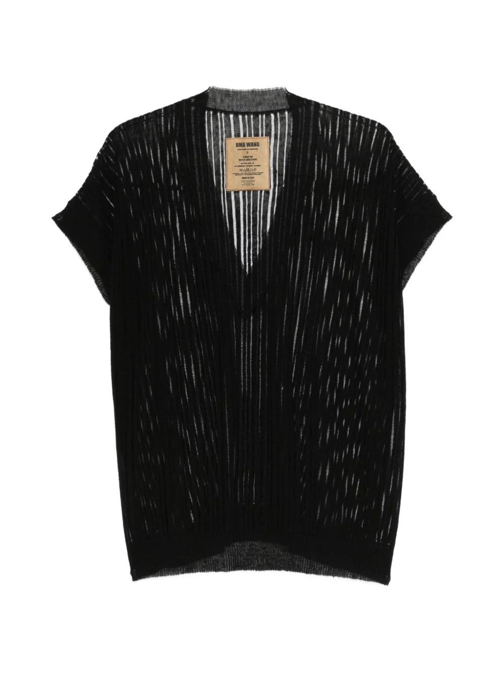 V-neck textured top Highlights - Black - V-neck - Textured - Short sleeves - Sheer Made in Italy Composition Linen/Flax 90%, Polyamide 10% Washing instructions Hand Wash