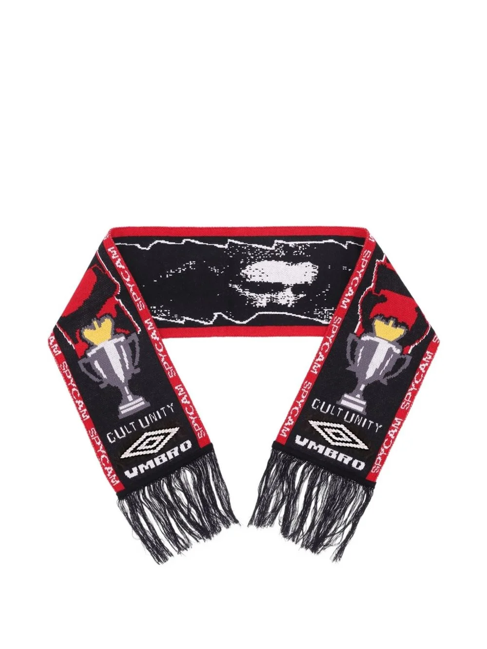 graphic-embroidered scarf Highlights - Black and red - Cup embroidery - Flame motif - Fringe detail - Logo detail Imported Composition Acrylic 100%