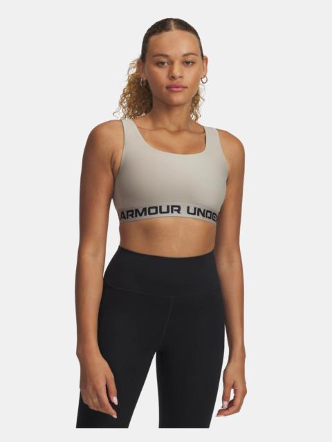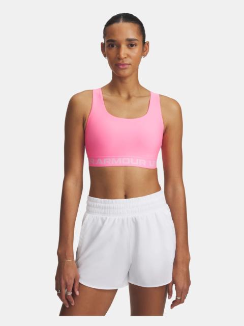 Bras shouldn't be complicated.They should be comfortable and they should be supportive. So we went straight to the source and asked real women how to make their favorite UA bra even better. And it worked. Product Details - Delivers strategic support, tailored for medium-support activities like cycling, weight training & boxing - Soft, quick-drying cups provide extra structure & coverage with perforations for added breathability - Removable cups with Right & Left labels - Updated interior construction helps keep pads in place—during wear & wash - Elastic band feels super-smooth & soft - Super-light, stretchy fabric is smooth & comfortable with crossover strappy back design - Material wicks sweat & dries really fast & light - Odor control technology minimizes odor Size & Fit - Ultra-tight, second-skin fit. Space & Care - Style #: 1390377 - 91% Polyester/9% Elastane - Imported
