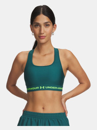 Bras shouldn't be complicated.They should be comfortable and they should be supportive. So we went straight to the source and asked real women how to make their favorite UA bra even better. And it worked. Product Details - Delivers strategic support, tailored for medium-support activities like cycling, weight training & boxing - Soft, quick-drying cups provide extra structure & coverage with perforations for added breathability - Removable cups with Right & Left labels - Crossover straps with updated keyhole detail for easier on/off - Updated interior construction helps keep pads in place—during wear & wash - Elastic band feels super-smooth & soft - Super-smooth, double-layer HeatGear® fabric delivers superior next-to-skin feel - Material wicks sweat & dries really fast & light Size & Fit - Ultra-tight, second-skin fit. Space & Care - Style #: 1361034 - 87% Polyester/13% Elastane - Imported - Remove pads before washing - Machine wash cold with like colors - Do not bleach - Tumble dry low - Do not iron - Do not use softeners - Do not dry clean