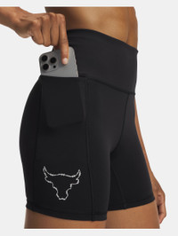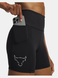 Project Rock training gear was built to help you find boundaries, then push right through them.These bike shorts were personally approved by Dwayne Johnson, the hardest worker in the room. ANY room. Product Details - Ultra-soft fabric is breathable & comfortable - Material wicks sweat & dries really fast - 4-way stretch material moves better in every direction - Wide, flat waistband with side drop-in pocket Size & Fit - Streamlined fit that's not too tight or too loose. Space & Care - Style #: 6005086 - Inseam: 5" - Pockets: Yes - 82% Polyester/18% Elastane - Imported