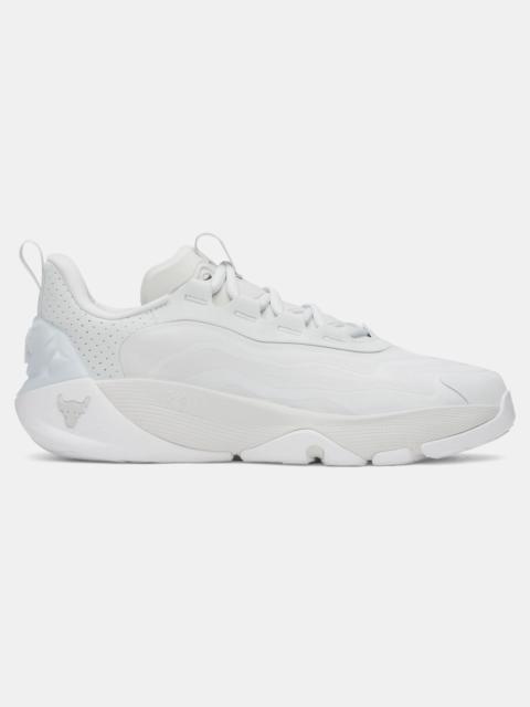 Put to the test by The Rock himself.With the ultra-breathable upper, responsive UA HOVR™ cushioning and UA TriBase™ to maximizes ground contact, the PR8 is built to help you push beyond your limits. Product Details - Engineered mesh upper is super breathable & comfortable with suede details for an elevated look & feel - Perforated neoprene tongue for added ventilation & comfort - Textured external heel counter for added stability - Responsive UA HOVR™ cushioning reduces impact, returns energy & helps propel you forward - UA TriBase™ maximizes ground contact, promotes natural motion & provides flexibility to grip during lifts - Durable outsole rubber with toe cap wraps up for support & protection through planks & other HIIT training Size & Fit - Regular Space & Care - Style #: 6000756 - Offset: 6mm - Weight: 10.5 oz. - Lace type: Standard tie - Imported
